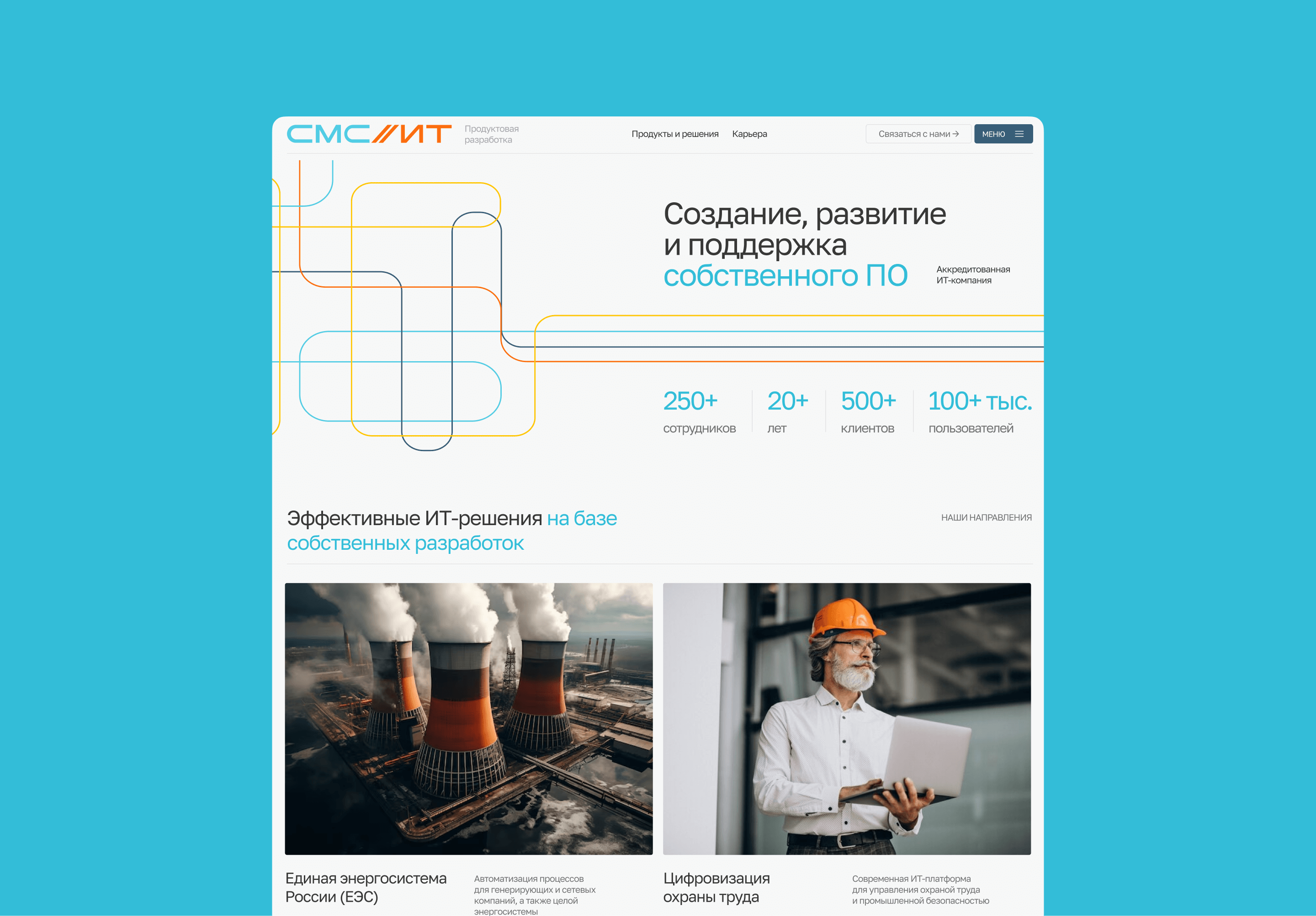 Задачей проекта стала разработка веб-сайта для ИТ-компании, который будет понятно и структурировано презентовать продукты, услуги и компетенции компании для B2B-аудитории.